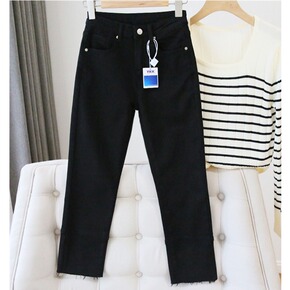 黑色天丝牛仔裤女九分冰氧吧夏天超薄款高腰小个子直筒冰丝烟管裤