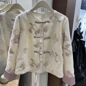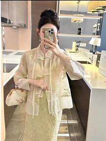 新中式国风粉色气质盘扣微透刺绣提花中式国风撞色质感短外套新