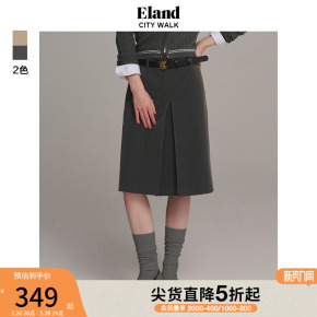 Eland衣恋半身裙女中长经典款A字裙工字褶间设计格雷系裙子