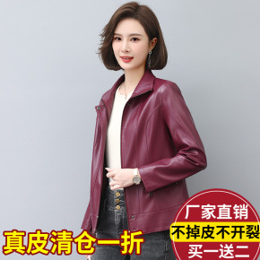 海宁真皮皮衣女2025春秋季新款短款大码中年妈妈装绵羊皮夹克外套