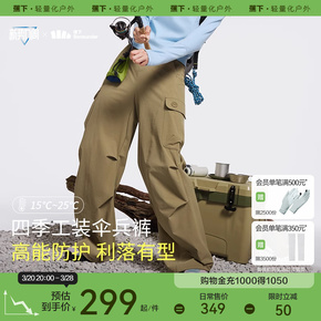 蕉下伞兵裤女防水徒步登山阔腿裤冲锋裤户外防风粉色垂感工装裤
