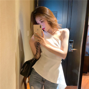 气质性感斜肩黑色上衣女夏韩版修身无袖T恤露肩打底背心外穿ins潮