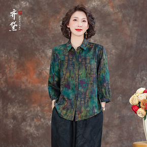 齐黛品牌花罗香云纱新中式上衣女2025新款气质衬衣妈妈装真丝衬衫