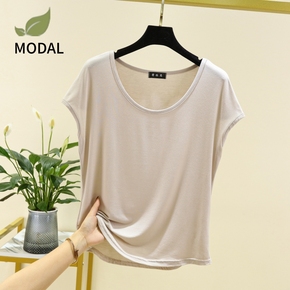 莫代尔圆领T恤女短袖背心宽松薄上衣夏季外穿半袖大码打底衫内搭
