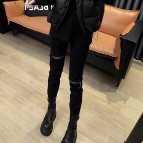 大码女装复古百搭修身牛仔裤女2025春季新款弹力显瘦小脚铅笔裤子