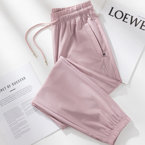 凉感粉色九分冰丝运动裤女春夏季薄款透气速干高腰小个子休闲长裤