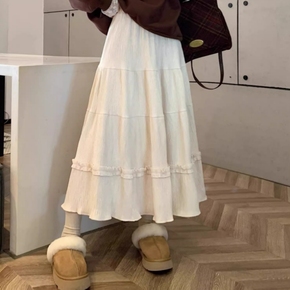 法式复古花边蛋糕裙中长款半身裙女春秋季宽松A字伞裙丝绒蓬蓬裙