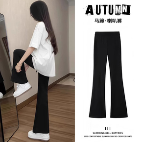 黑色微喇裤女2025新款春秋小个子垂坠感西装马蹄裤高腰显瘦喇叭裤