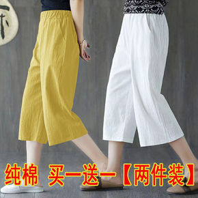 单/两件装 七分裤女夏季薄款休闲裤宽松显瘦七分裤阔腿裤中裤女裤