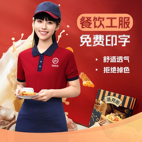 餐饮服务员工作服t恤定制logo印字夏季短袖polo衫短袖火锅店专用