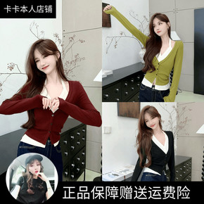 卡卡女装官方旗舰店正品韩漫天菜设计感休闲假两件长袖T恤上衣女