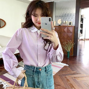 撞色竖条纹衬衫女2025年春装流行韩系通勤高级感时尚休闲百搭衬衣