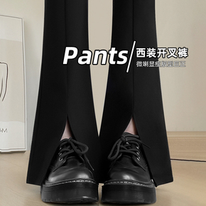 黑色喇叭裤女春秋2025新款高腰显瘦小个子开叉修身西装马蹄微喇裤