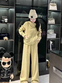 【现货】柏多伊俪7022加绒厚套装女连帽卫衣外套阔腿裤两件套
