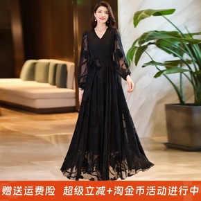 2025年新款春秋冬大摆连衣裙收腰显瘦旅游度假长裙雪纺裙沙滩裙子