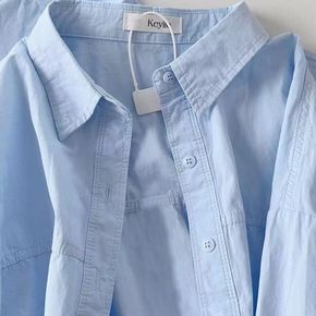 森系轻奢纯棉蓝色衬衫女春秋内搭叠穿百搭显瘦小个子正肩衬衣外穿