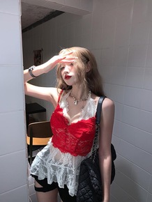 辣妹风夏季内搭V领真两件挂脖吊带背心女纯欲蕾丝修身显瘦女上衣