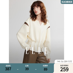 ELLE设计感假两件拼接撞色卫衣女2025春季新款收腰褶皱长袖上衣