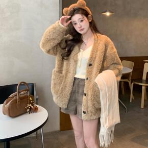 JAMUUS韩系慵懒仿羊羔绒外套女冬新款环保皮草皮毛一体上衣