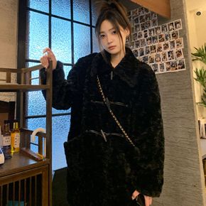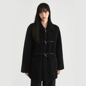 King Prince贵千金黑色牛角扣毛毛外套宽松显瘦羊羔毛外套女冬季