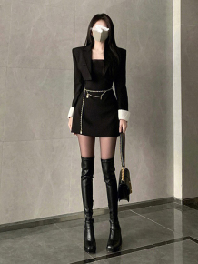 黑色御姐风西装连衣裙女春季2025新款辣妹修身包臀短裙子两件套装