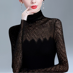 镂空高领羊毛打底衫女长袖2024秋冬新款修身堆堆领针织衫薄款毛衣