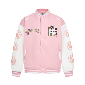 文文不乖原创猫爪刺绣撞色学院风棒球服男女百搭春款宽松情侣外套