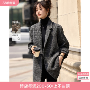 沫晗依美通勤廓形小香风外套大衣2024冬季新款气质百搭中长款外套