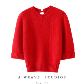 夺目气质!法式粗针加厚100%纯山羊绒短袖女纯羊绒毛衣针织衫短款