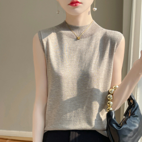 一线成衣黑色复古半高领内搭背心打底衫羊毛无袖薄款毛衣针织衫韩