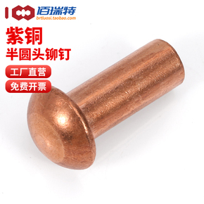 紫铜铆钉实心圆头铆钉M1.5M2M2.5M3M4M5M6M8紫铜半圆毛
