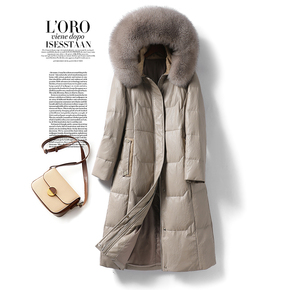 皮羽绒服女中长款连帽狐狸毛领90白鸭绒海宁真皮2025新款绵羊皮衣