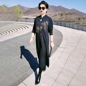 秋冬旗袍改良连衣裙羊毛针织保暖妈妈百搭显瘦中长款配大衣长裙子