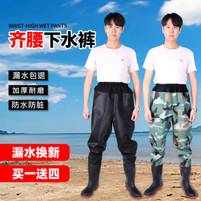 半身下水裤齐腰防水衣服雨裤带雨鞋皮叉裤抓鱼水库男连体加厚超轻
