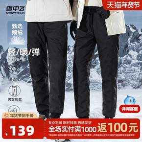 雪中飞2025冬新款男女同款鹅绒羽绒裤休闲束脚防风保暖御寒黑色