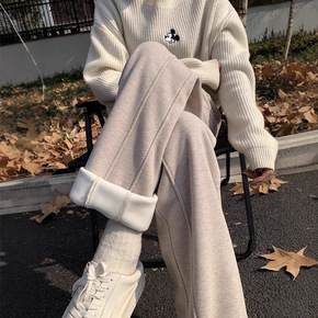 2025新款休闲裤日常百搭通勤慵懒加绒加厚小个子保暖人字纹女宽松