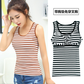 新款背心女带胸垫一体罩杯内衣无钢圈棉质瑜伽吊带免穿文胸打底衫