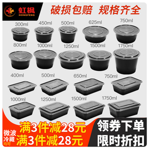 圆形1000ML一次性餐盒快餐便当汤碗打包盒包邮加厚黑色外卖饭盒