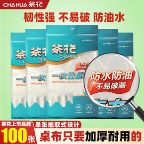 茶花一次性桌布圆桌加厚塑料台布长方形餐桌布家用结婚红色野餐垫