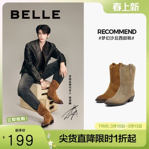 张凌赫同款百丽女靴梦幻沙丘西部牛仔休闲短靴加绒新款BDU60DZ5