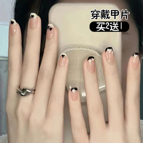 法式短款穿戴甲高级感2025年新款成品美甲片爱心假指甲贴片果冻胶
