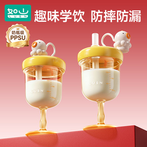 如山儿童PPSU高脚杯学饮杯鸭嘴宝宝婴儿喝水家用杯果汁酒杯式奶瓶