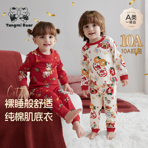 马年儿童红色秋衣秋裤套装男童女童宝宝本命年纯棉保暖内衣家居服