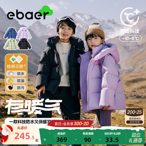 EBAER儿童羽绒服三防面包服2025冬新款男童女童红色羽绒外套冬装