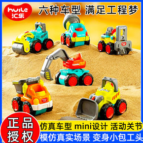 汇乐口袋工程车惯性迷你仿真汽车模型儿童男孩玩具车挖掘机2岁
