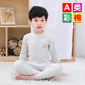 彩棉儿童内衣套装全棉男童秋衣秋裤纯棉中领线衣线裤5岁保暖睡衣