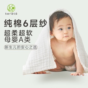 kerata可徕宝新生初生婴幼儿A类纯棉6层纱布浴巾全棉盖毯速干儿童
