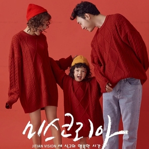 网红款亲子摄影主题照相服装影楼全家福新年红色麻花毛衣拍照童装