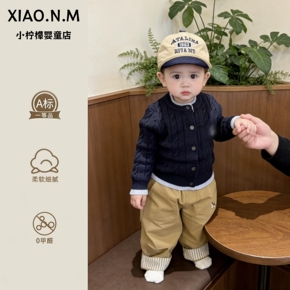 婴儿开衫毛衣男宝宝衣服春装超韩洋气拼色针织衫春款外出服周岁潮