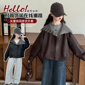 女童连帽皮衣外套春秋新款儿童爆款中大童休闲上衣童装衣服秋装